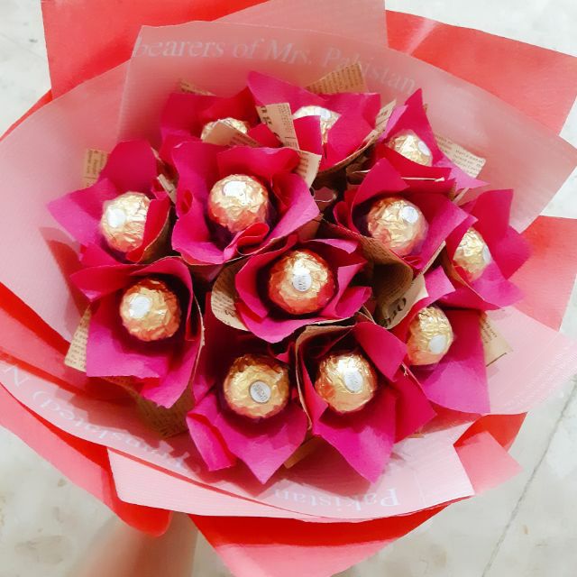 Basic (as shown)3 stalks roses, 3 stalks ferrero rocher, baby breath bouquet premium6 stalks roses, . See more ideas about chocolate bouquet, candy bouquet, ferrero rocher bouquet. You can do it in 30 minutes!subscribing to the channel: . Send this simple gift to sweeten his/her day! Check out our ferrero rocher bouquet selection for the very best in unique or custom, handmade pieces from our chocolates shops. Surprise your loved one this valentines on her birthday and pther occasion . Simple and sweet topiary with 24 yummy ferrero rocher chocolates! Basic (as shown)3 stalks roses, 3 stalks ferrero rocher & yellow peacock bouquet premium6 stalks roses, . Ferrero rocher chocolate bouquet designed with mesmerizing red fl. You might be interested in. Safe and secure payments.easy returns.100% authentic products.